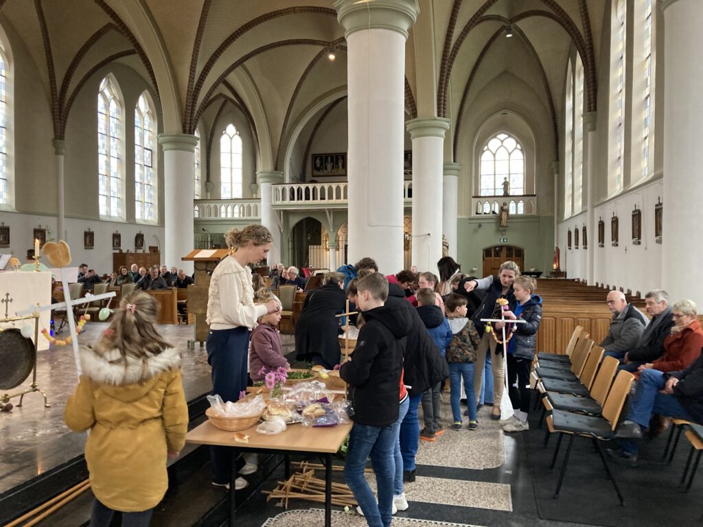 Foto’s: Palmpaasstokken versieren, Palmpaasoptocht door de kerk en